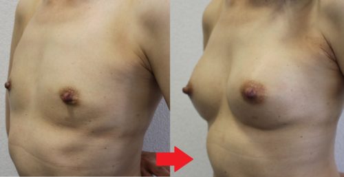 では、左側の真性の女性化乳房を切除したモニターを紹介します。