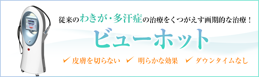 高周波の照射によって、わきが多汗症の原因である汗腺の動きを抑える切らない治療、ビューホット。