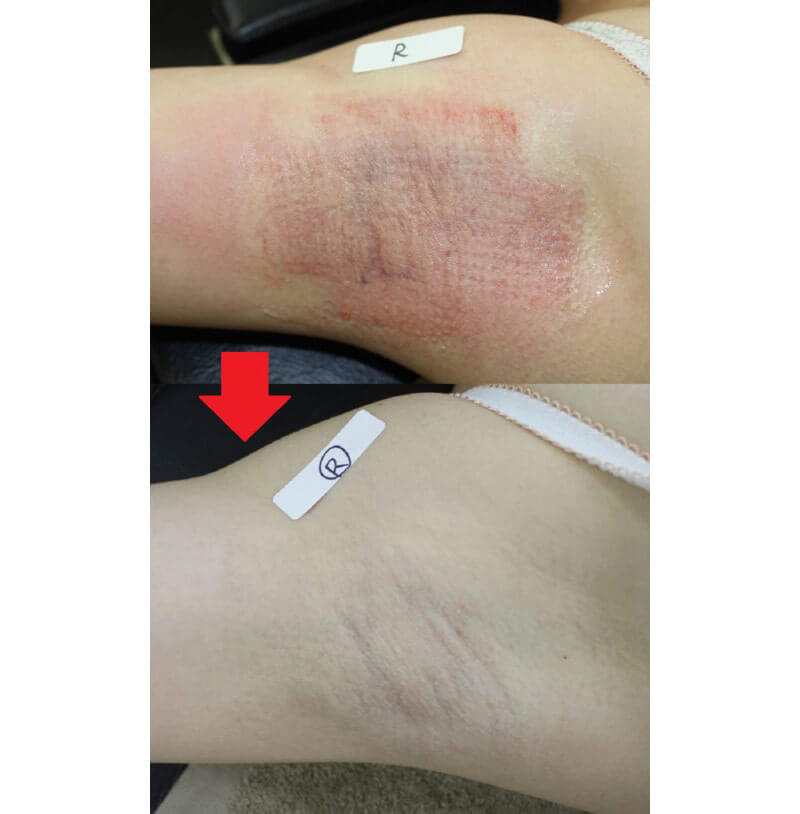 熟練した医師が行えば、治療効果は確実で「わきが臭」の再発はほとんどありません。ただ、傷が大きく、手術後の回復も約2週間の期間を要します。